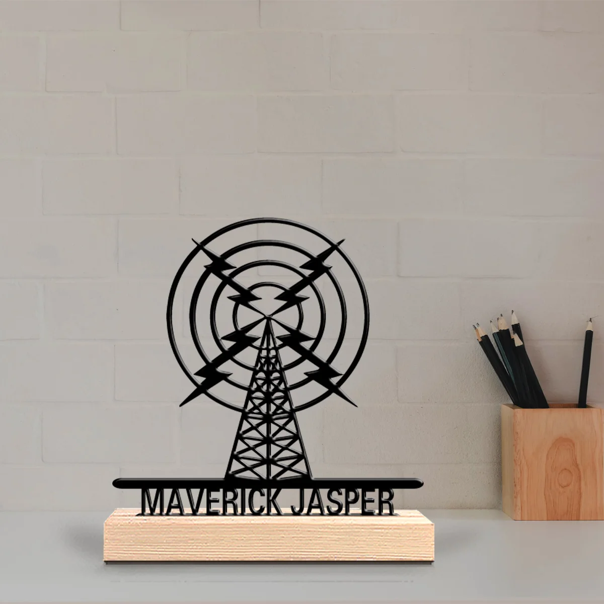 1pc Fashion personalized custom Signal tower Metal statues Metal Art with Wooden Base suitable for workers, offices, bedrooms, l
